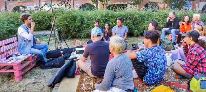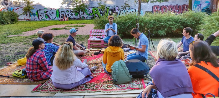 На этих выходных прошел первый мастер-класс после нашего перезапуска. Было волнительно - давно не говорил на публику, переживал по поводу погоды, т.к. все проходило на открытом воздухе, но все прошло очень хорошо. Было приятно видеть столько заинтересованных людей. Я был бы уже доволен, если бы пришло пару человек, но было около 10-15. В конце устроили небольшую музыкальную вакханалию. Откуда-то еще взялись кахон, ханг, укулеле, шейкеры и получился настоящий джем. Кстати джем решили сделать регулярным, так что заглядывайте к нам в сквер (СПБ, 10-я линия, д. 35 ) в субботу при хорошей погоде будем собираться часиков в 18-19. Ну я еще анонсирую)