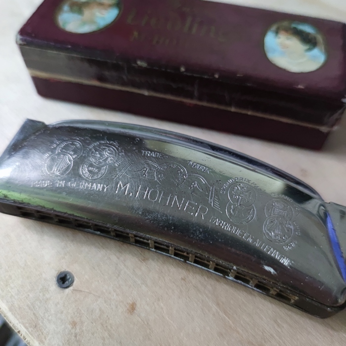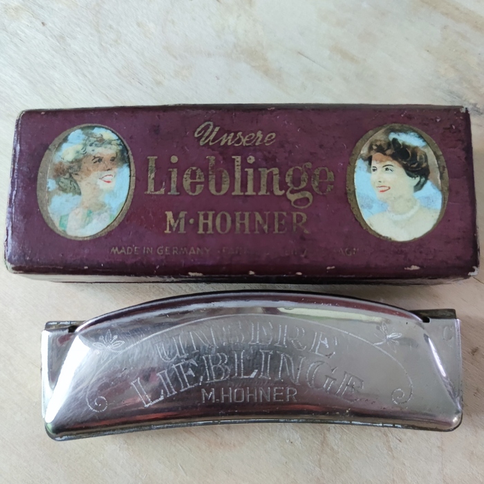 Один мой друг, зная о моем увлечении губными гармошками, решил сделать мне замечательный подарок - нашел на барахолке в Калининграде старичка Hohner Unsere Lieblinge ажно 1937 года выпуска. То есть у меня дома теперь есть живой свидетель знаменитого австрийского художника. :D