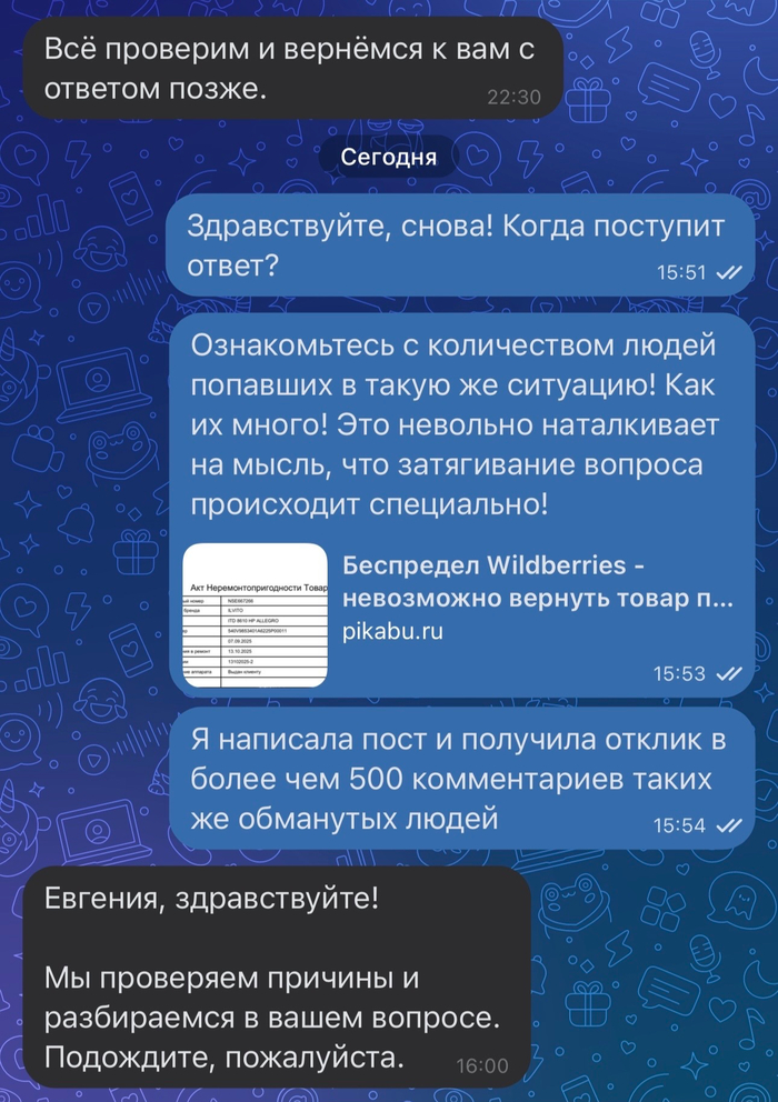 Ответ на пост «ФИНАЛ моей истории разборок с Wildberries! Если ты не готов сдаваться»1