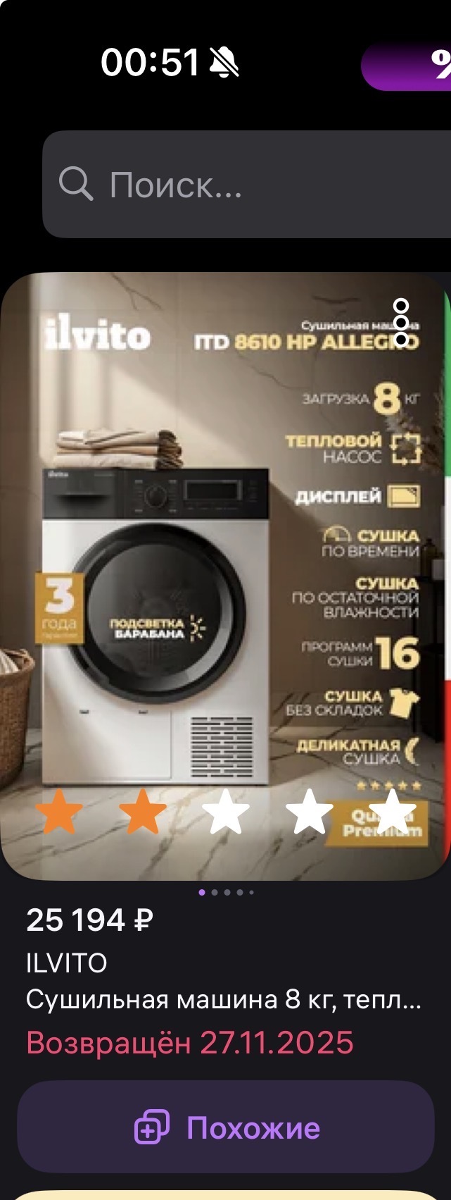 Волшебным образом, без всяких заявок, без QR-кодов у меня в приложении Wildberries в покупках статус на сушильной машине изменился с доставлено на возвращен!