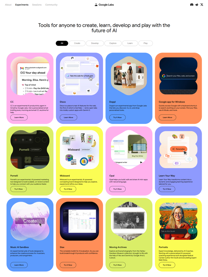 Тут можно протестировать инструменты, которые еще не вышли в официальный доступ. Например, трендовый NotebookLM впервые появился здесь в качестве демо. Пригодится всем, кто хочет первым пробовать технологии будущего.