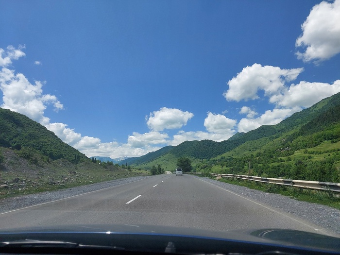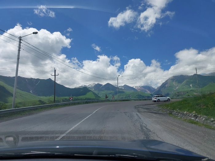 Примерно в половину двенадцатого мы выехали из Тбилиси и оказались на Военно-Грузинской дороге. Она идёт от Тбилиси до Владикавказа, и её продолжительность составляет 208 километров.