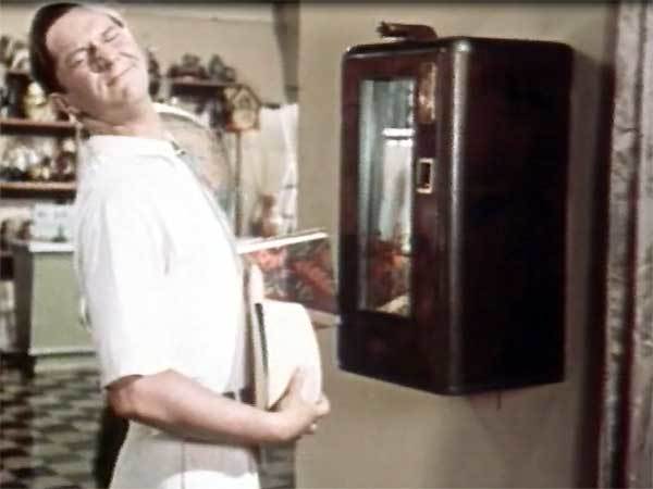 Кстати раньше на Чистых прудах были автоматы с газировкой. Кстати во многих фильм я вижу автоматы, которые стоят по городу и не только в Москве. Сейчас их уже там нет.
