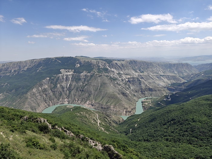 В итоге, мы вечером еще и на смотровую площадку над Гунибом сгоняли. Там долго тащились за вонючим мусоровозом, никак не могли его обогнать на серпантине... Жена-то как довольна! 😂