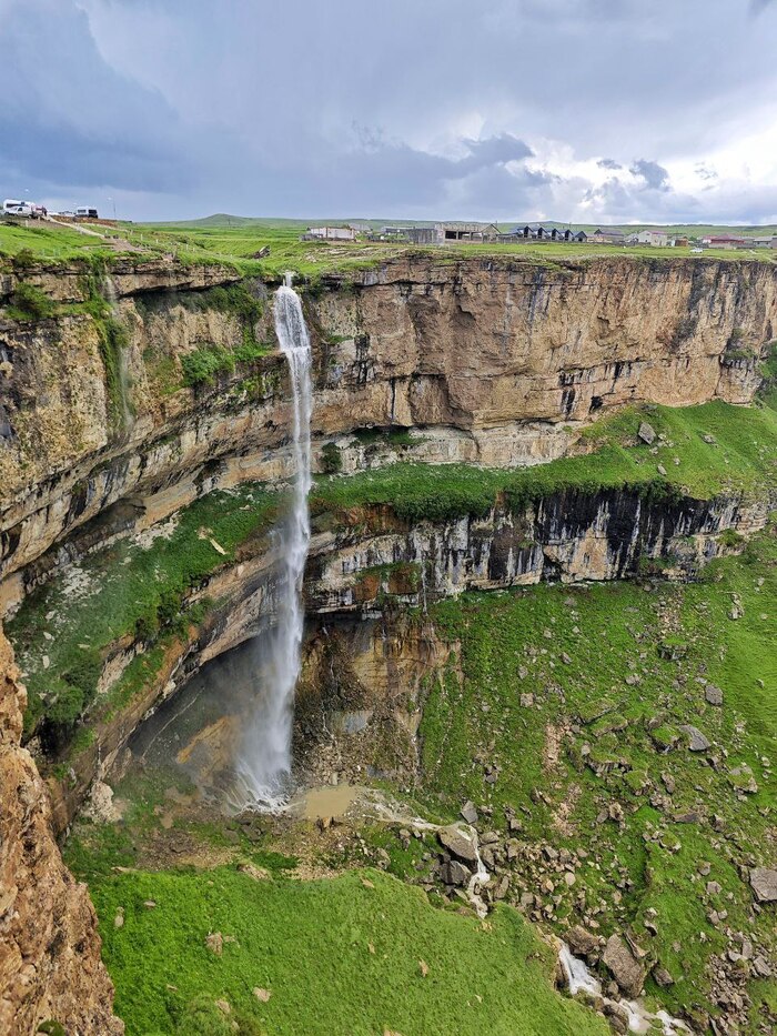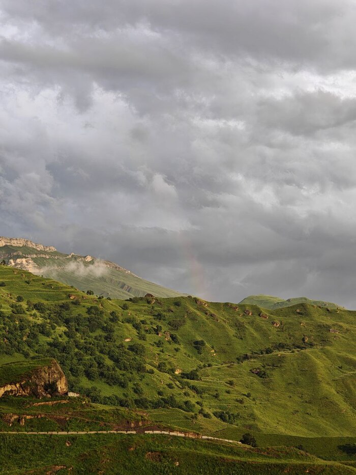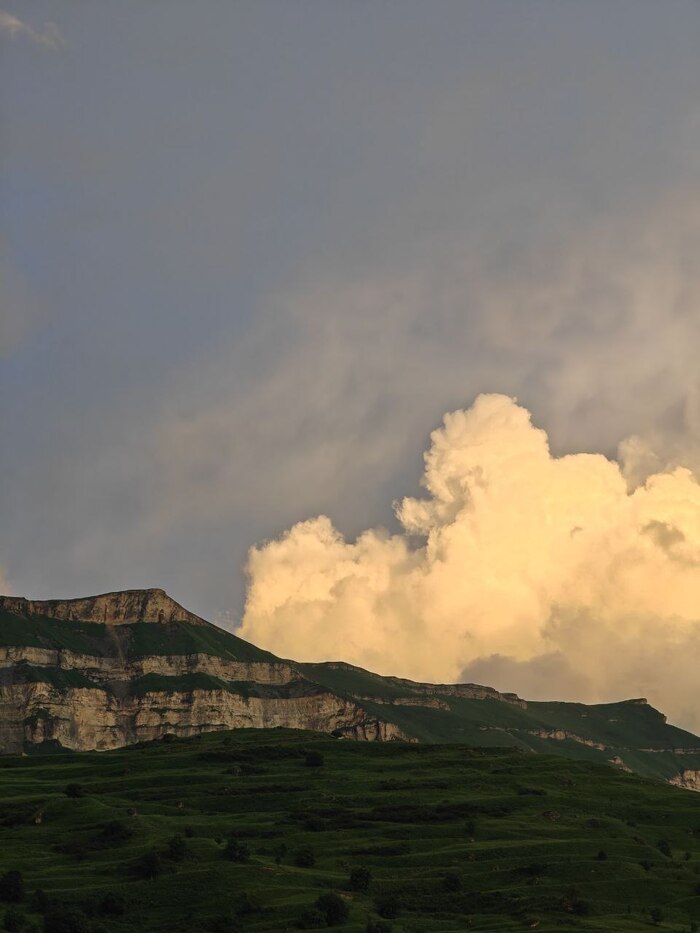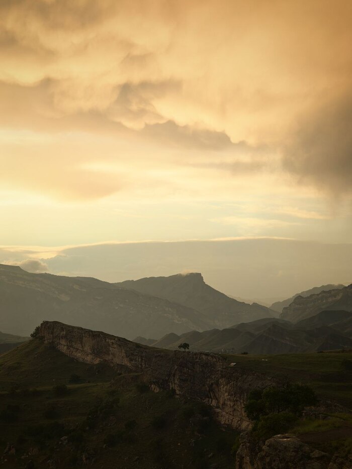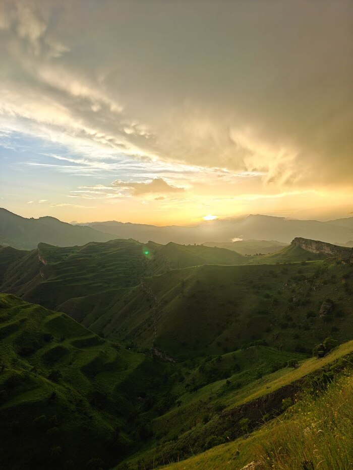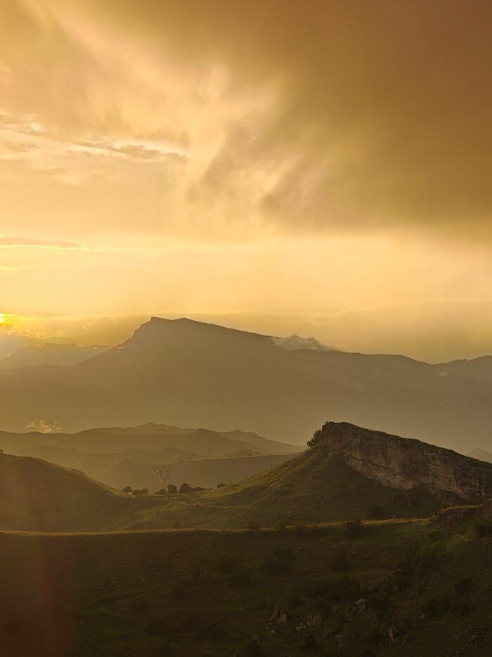 Из Гуниба мы скатались еще в пару красивейших мест. Первым были Чохские террасы. Мы мало на что надеялись, потому что шел дикий ливень, гремел гром и сверкали молнии. А самые красивые виды в том месте на закате солнца, которое было скрыто за черными тучами. В Гунибе, кстати, 300 солнечных дней в году, а мы попали в 2 дождливых)).