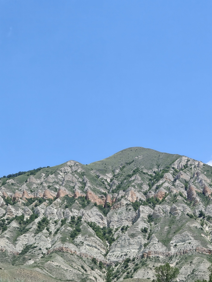 После 3-х ночей откисания у моря мы поехали дальше. У нас был забронирован домик с видом на горы и Гуниб. Сама по себе дорога от Избербаша до Гуниба - это уже достопримечательность, сначала ярко зеленые луга на горах, потом горы с деревьями, потом появляются острые каменные скалы. Очень много пейзажей сменяется за 2 часа пути. Время в дороге пролетает незаметно с такой красотой.