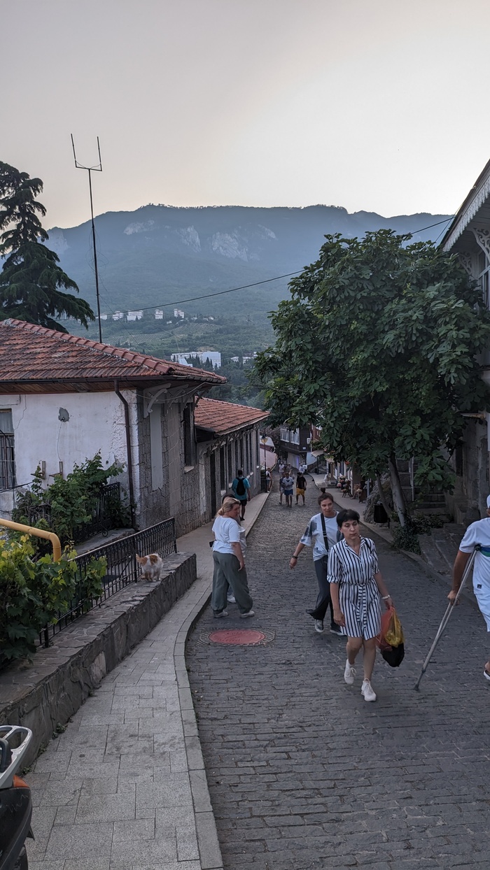 Словно бы охраняя вход на белоснежную виллу, они непринужденно общаются меж собой, обсуждая что-то своё, как, наверное, сиживали когда-то на террасе усадьбы «Саламбо», ныне превращенной в дом творчества художника Константина Коровина.