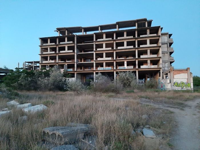 После пляжа мы посетили недострой неподалеку. Думаю, это здание должно было быть санаторием. Оно никак не охраняется и туда можно спокойно войти. Красивый вид открывается с верхнего этажа. С одной стороны море, с другой - то самое минеральное озеро.