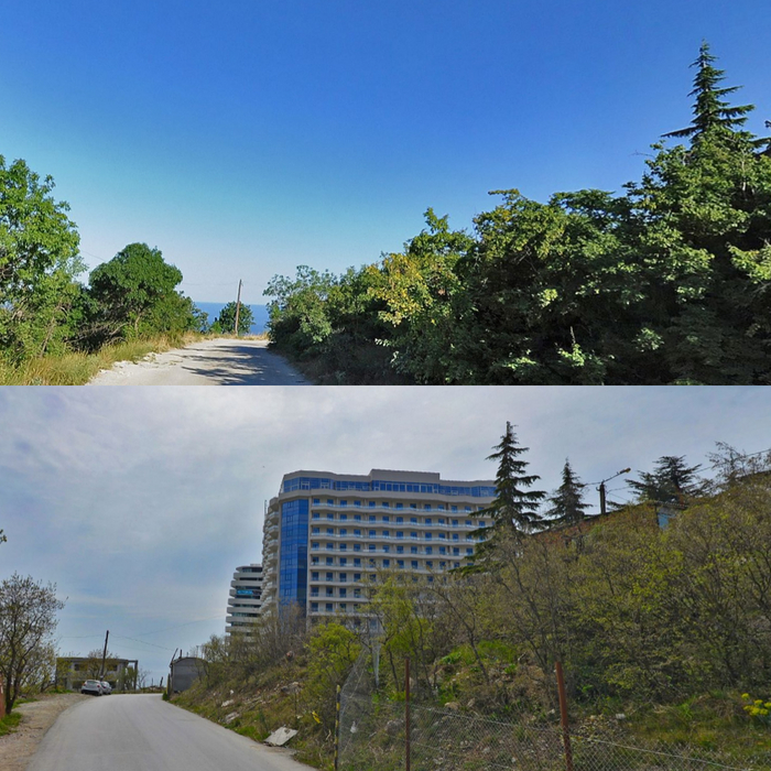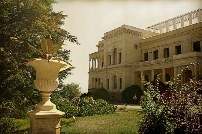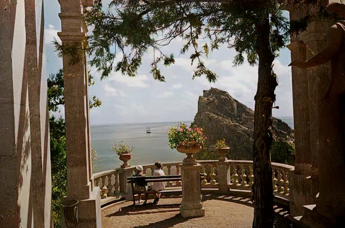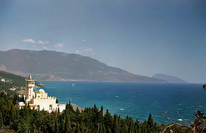 Вид с крыши Воронцовского дворца. Город Алупка.