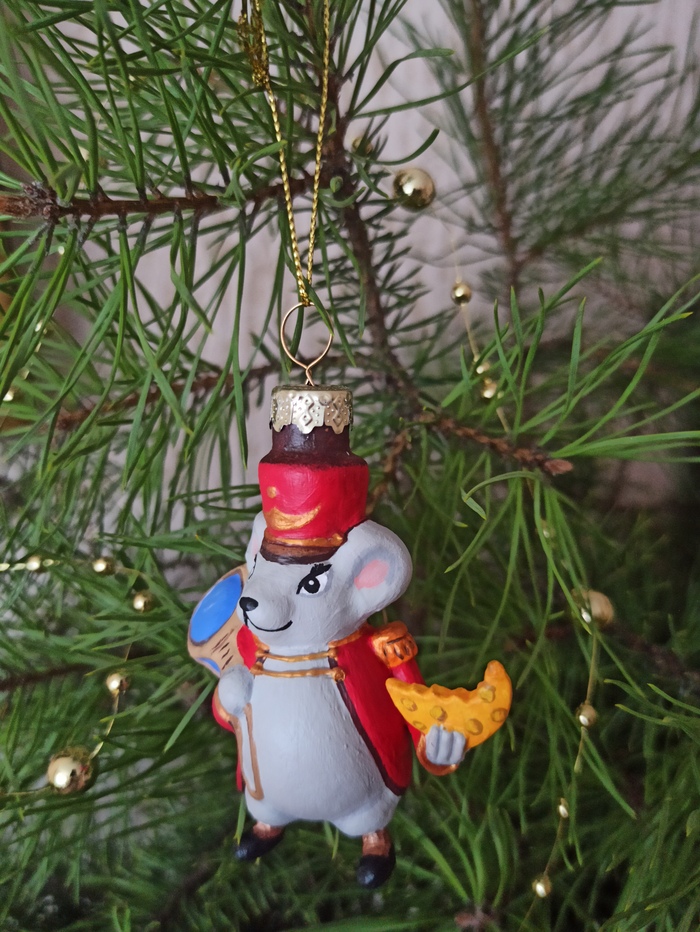 Первый раз, кстати, вижу такую игрушку - когда основная форма стеклянная, а детали - пластиковые и приклеенные (рука, ножки). При подготовке "болванки" их надо было "оттаять" феном, убрать термоклей, все тщательно зачистить-отмыть, собрать обратно крепко и незаметно, и уже потом грунтовать и расписывать.