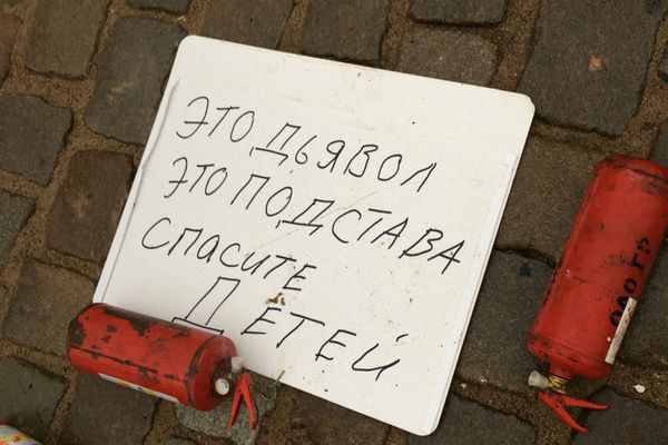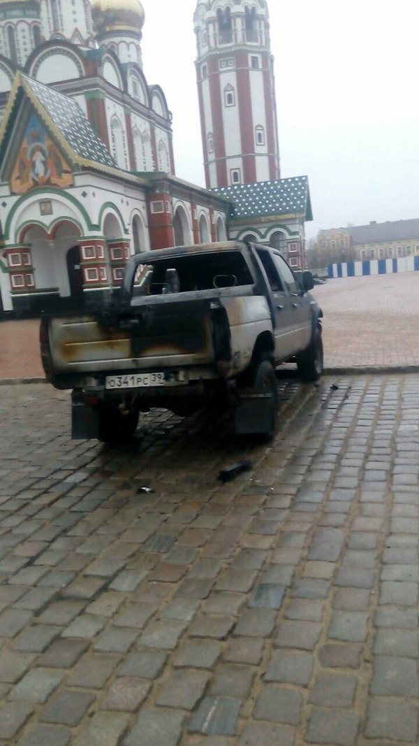 На главной площади г. Гусева совершен акт самосожжения. По данным свидетелей, мужчина, по всей видимости, облил себя бензином перед тем, как поджечь машину. «Он очень сильно обгорел. Лица практически не осталось, — отметили они. — Рядом лежала записка „Это дьявол, это подстава, спасите детей“».