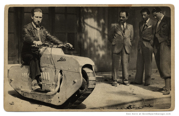 В 1938 году французский инженер Леэтр представил свой взгляд на мотоциклы под названием Tractorcycle. Сделав свой мотоцикл целиком на гусеничном ходу.