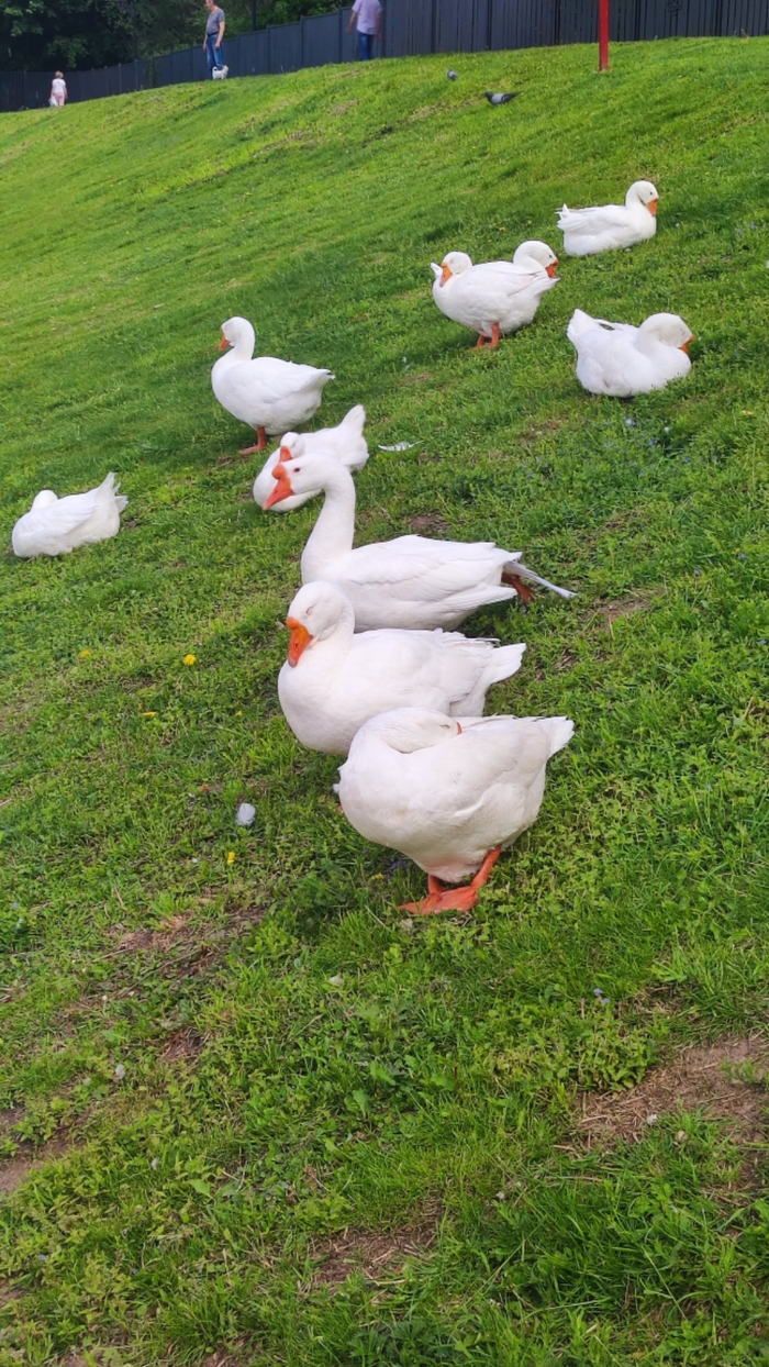 Честно, мы привыкли к гусикам, их белоснежное облако весьма украшало воды нашего пруда.