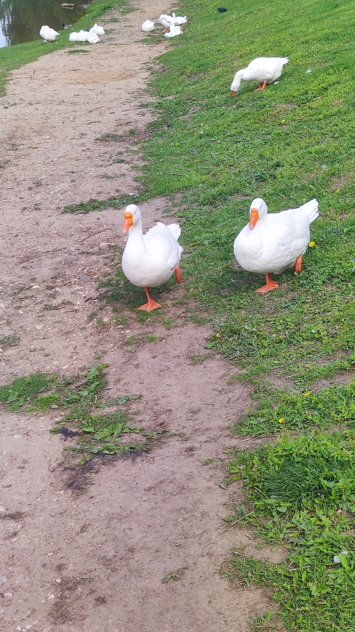 Гуси стали ручными, охотно фотографировались, не шипели и не щипались а просто попрошайничали жратву и считали пруд своим.