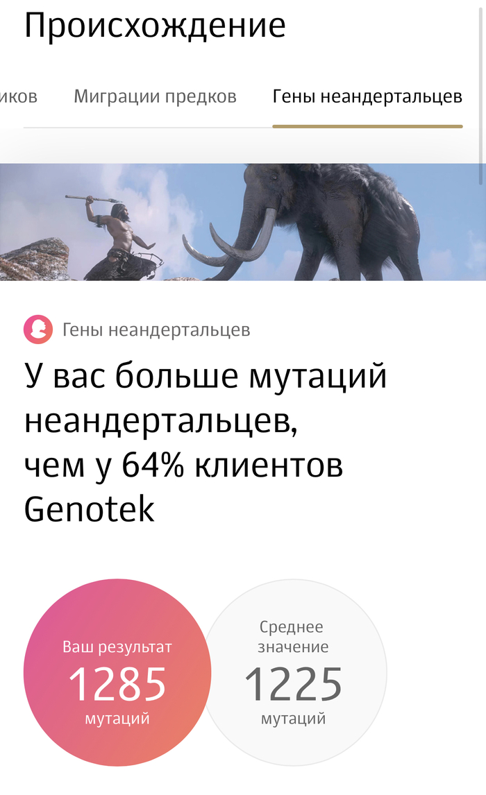 Есть компании, которые предлагают узнать, насколько вы неандерталец. Да, действительно, можно сравнить наш геном и геном наших вымерших кузенов. Но важно понимать, что наш с ними геном и так совпадает на 99%. Поэтому в компаниях смотрят на генетические варианты, по которым человек от неандертальцев отличается. И вот кто-то от неандертальцев отличается чуть больше, кто-то — чуть меньше. А вообще неандертальцы скрещивались с нашими предками, поэтому у всех нас есть небольшой процент генетических вариантов, свойственных неандертальцам.