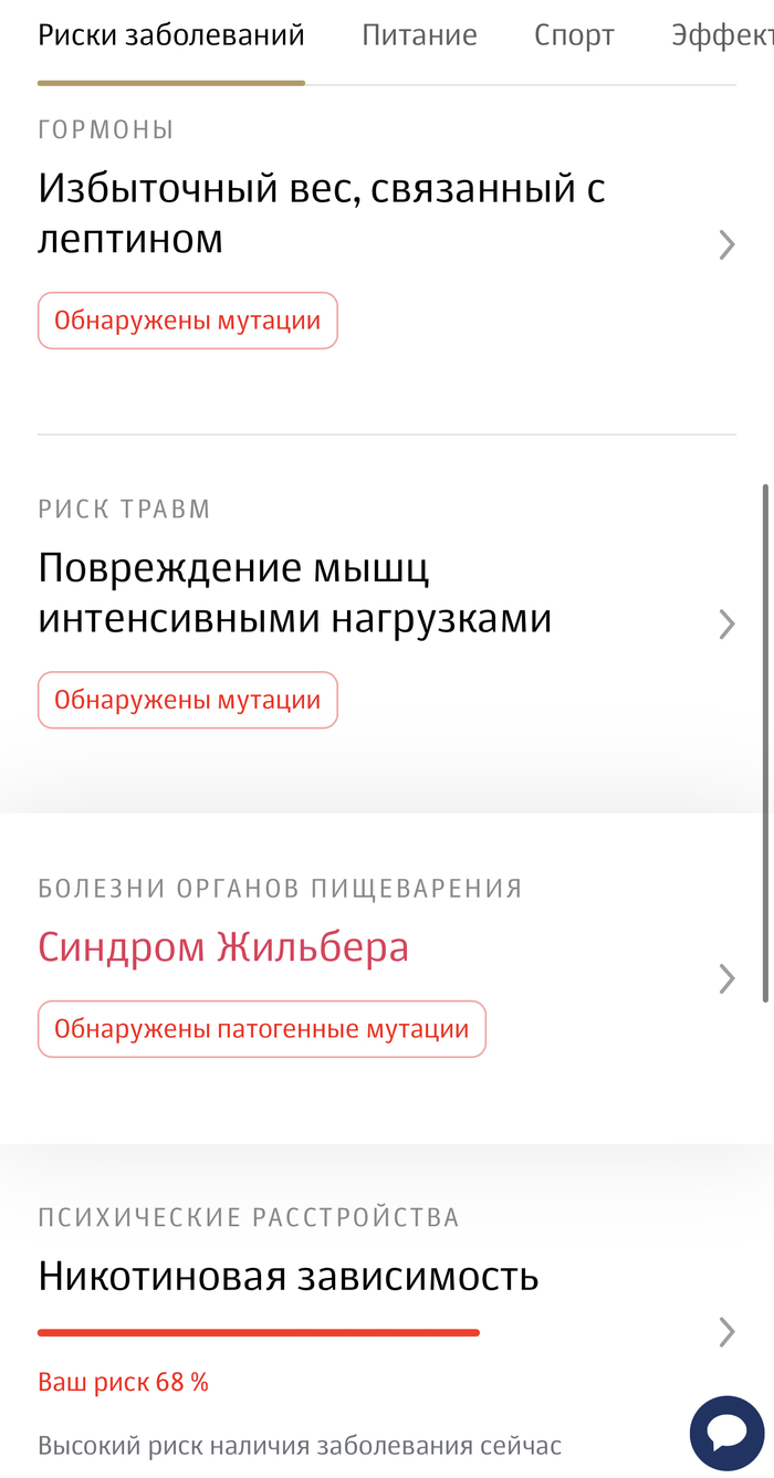 Ещё на генетическое тестирование пациентов могут отправлять врачи — если они подозревают какое-то генетически обусловленное заболевание. У меня, например, одно время проявлялись разные неприятные симптомы, которые никто не мог объяснить. В итоге мой семейный врач предположил, что у меня мутация в гене, который предсказывает появление болезни Жильбера. К счастью, у меня оказались поломаны не обе копии гена, а лишь одна — и в итоге на моей жизни заболевание почти никак не отражается, а небольшие изменения образа жизни устраняют симптомы. А ещё, как я выяснил, моя мутация ассоциирована с более высокой продолжительностью жизни, по данным ряда исследований. Вредная мутация оказалась немножко полезной!