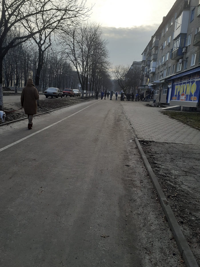 Ближе к 8 утра пошел в магазин, чтобы купить необходимого, было безумно страшно. Вот так выглядела очередь к банкомату в начале 8 утра.