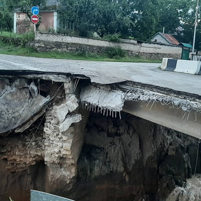 РИА «Карачаево-Черкесия» пишет, что мост частично обрушен, но никто не пострадал: <https://www.riakchr.ru/v-karachaevskom-rayone-v-rezultate-li...>.