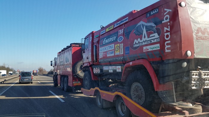 Ехали в пятницу домой и по дороге попалась колонна МАЗ-Спортавто возвращающаяся с "Дакар'!
