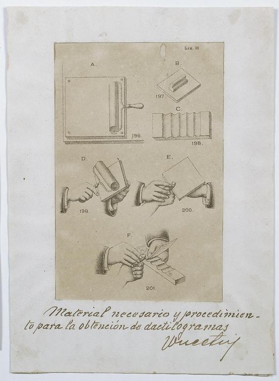 Разработанная Вучетичем инструкция по снятию отпечатков пальцев, 1890 год. Источник: Полицейский музей Министерства безопасности провинции Буэнос-Айрес, Аргентина.