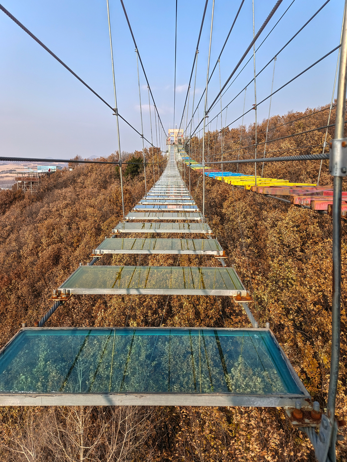 Стеклянный мост находится недалеко от г. Хунчунь в национальном парке Пияньшань. Вроде при чём тут Хунчунь, если гораздо ближе к мосту находятся г. Луцзинь и г. Яньцзы? А потому что в Хунчунь можно попасть из России через погранпереход в с. Краскино Приморского края. Сейчас Китай отменил визы для россиян, и доехать до Хунчуня можно на рейсовом автобусе, без гидов и турфирм. А от Хунчуня можно путешествовать на поездах практически по всему Китаю.