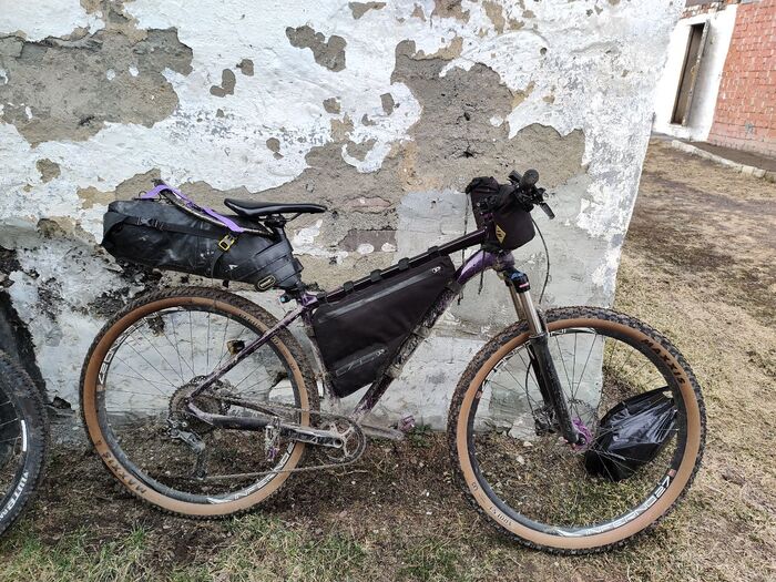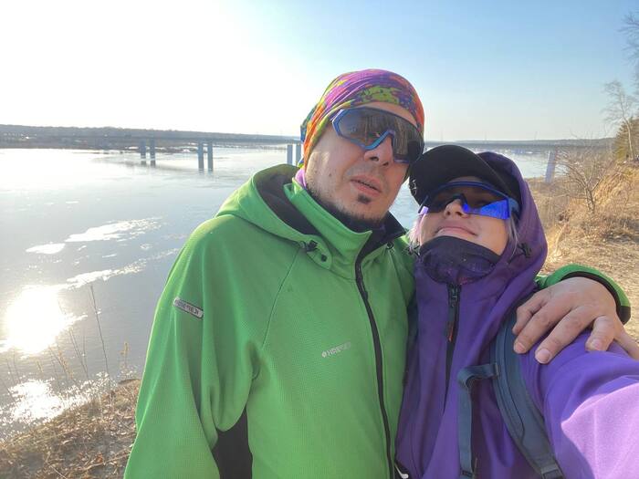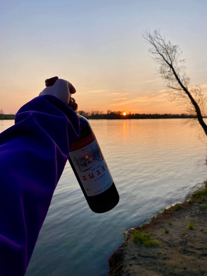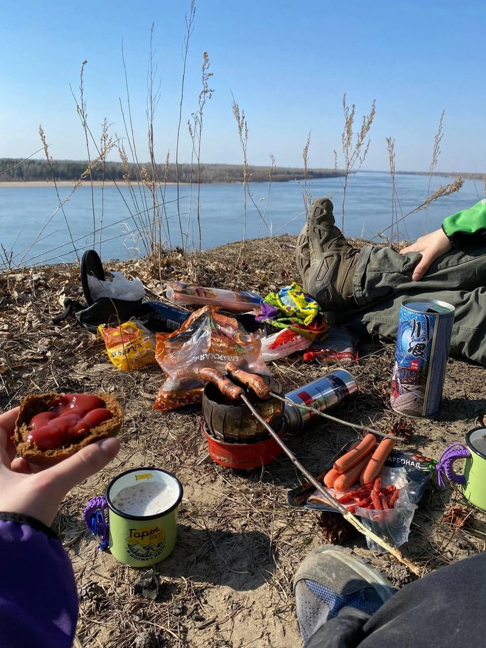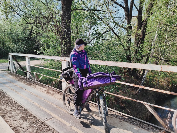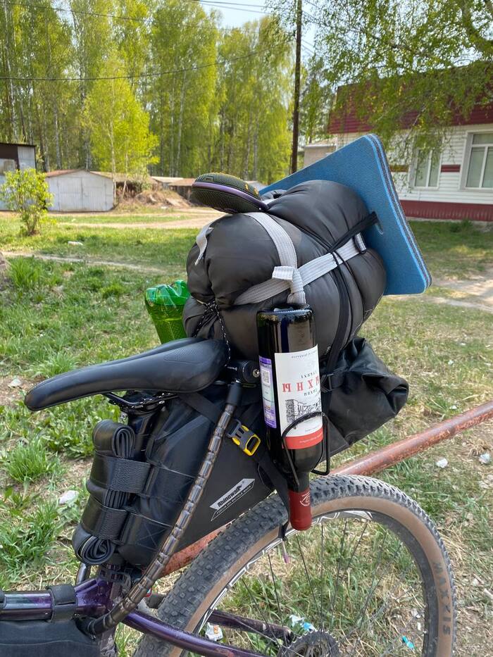Взял бутылочку отметить вечер и первый выполз на природу в сезоне, а у Лары в жизни, с байкпакингом и палаткой)