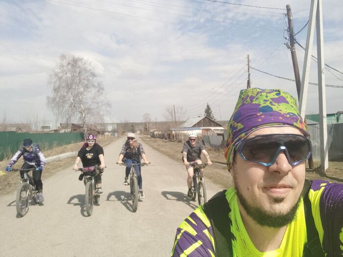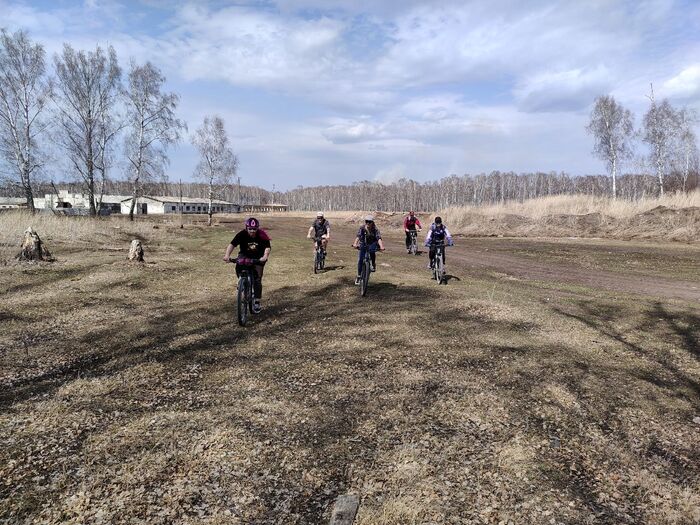 Спуск велов, выезд, поют птички, светит солнце примерно на +8