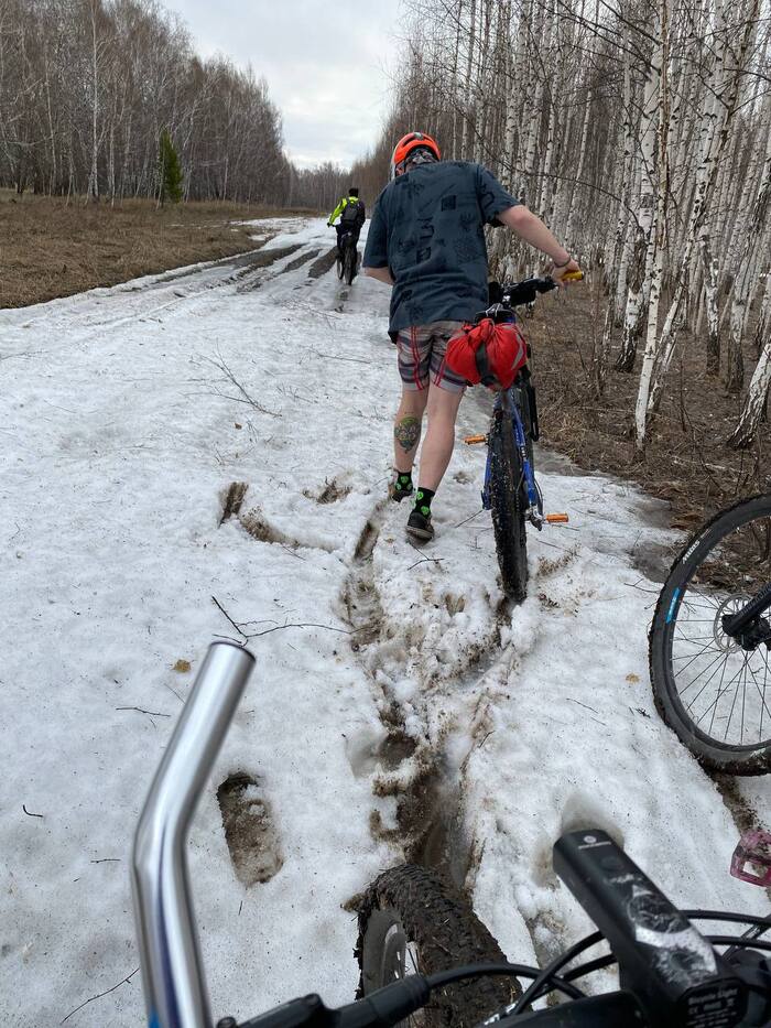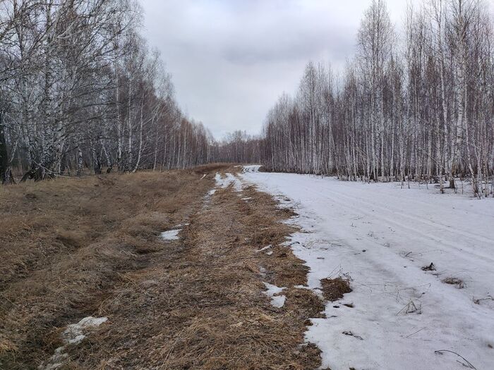 Радости не было п... Её просто не было, ибо выбор падал: ехац по рыхлому снегу, либо по траве, либо промеж берёз 😐