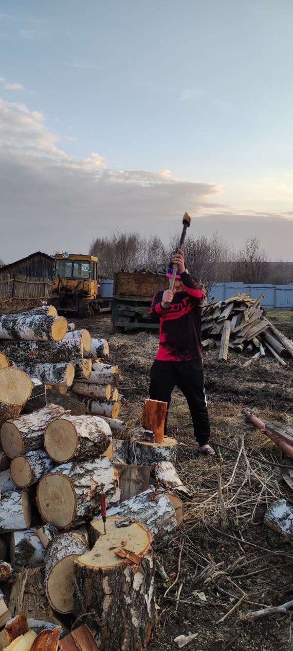 Пока дамы готовили пиво к употреблению и фоткались на тракторе, мы кололи дровишки и готовили баньку к походу в баньку)