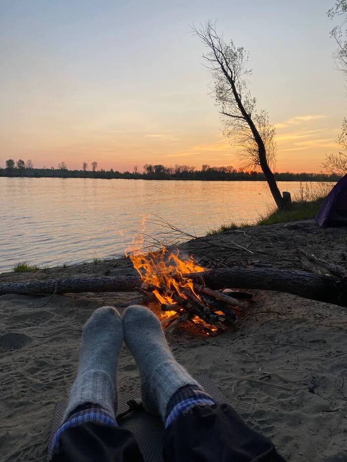 Приятный вечер и прекрасная ночь у костра, полная любви, разговоры до утра и уютный сон в спальниках, в палатке.