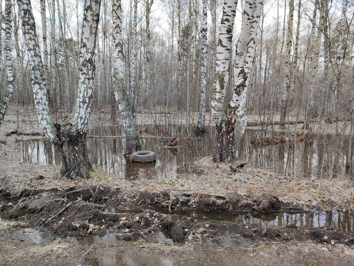 Жижа сменилась подлым снегом, под которым была вода, вода по щиколотку и колея, либо ты идёшь по снегу с водой, либо выходишь в лес по воде и идёшь по лесу.