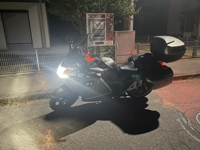 До того, как отправиться в путешествие, нужно было закрыть пару гештальтиков - сдать на права (мои российские к тому времени превратились в тыкву) и пройти техосмотр (TüV). Про то, как я мучался с первым, уже написан отдельный пост. Со вторым было относительно несложно, но события развивались довольно стремительно - 8 июля отогнали байк на сервис - выполнить регламентные работы, поменять покрышки (иначе не прошёл бы техосмотр) и подрегулировать фары. Экзамен я сдавал 13го в среду, в четверг 14-го сгонял в администрацию, получил пластик и сразу же за байком. Записался на техосмотр (тут это называется HU - Hauptuntersuchung) на понедельник 18-го. В понедельник же стартовал мой отпуск, выезд же был назначен в ночь на вторник. С учётом того, на каком горизонте принято планировать своё время у немцев, мой план выглядел "немного" авантюрно. Слишком много возможностей зафакапиться и всё сорвать. Не сдал бы на права - отпуск в трубу, пересдача в лучшем случае через 2 недели, не прошёл бы TüV - ещё хуже - итак плакетка была уже на исходе, а записаться на сервис для устранения недостатков в сезон реально только недели через 4. Тем удивительнее, что всё это получилось провернуть. На техосмотре дядька только сказал Schönes Reisemotorrad! Оценил новые покрышки, обратил внимание, что где-то прокладка потеет маслом, запихнул какую-то херовину в выхлоп, погазовал, прокатился вокруг станции и поклеил новую плакетку, до 24 года. Всё готово, осталось всё собрать и отоспаться.