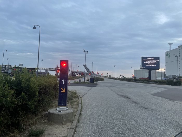 После Гессенских горок дорога выходит на равнину и идёт к Ганноверу, столице Нижней Саксонии, на неё я вышел около 9 часов утра и тут на меня навалилась её величество жара. Вроде 9 утра, должно быть свежо, но было уже +30 с дальнейшим неблагоприятным прогнозом. Автобан в 3 полосы в каждом направлении, поэтому от грузовиков не страдаешь, но ремонты всё ещё есть и так же бесят. Останавливаюсь перекусить, открываю телефон, а там одни Wetterwarnung'и — Гессен — жара, Нижняя Саксония — жара, Шлезвиг-Гольштейн — жара. Хорошо, что стояночки хотя бы в теньке делают, а то я бы поплавился в полном экипе. Из-за жары частенько, особенно в ремонте, еду с открытым флипом и поднятым ветровиком (очень зря...). Около полудня подъезжаем к Гамбургу (это, кстати, отдельная Земля — Freie und Hansenstadt Hamburg, иногда просто HH, самый крупный нестоличный город ЕС и второй по огромности порт, после Роттердама), игнорируем рекомендации Гармина ехать в направлении Любека и продолжаем ехать по А7. Тошним по пробкам (ну да, как ни рассчитывал маршрут, а к Гамбургу подъехал в самое «сочное» время), охреневаем от жары, чуть не пешком ползём через тоннель под Эльбой. Всё, выходим из города и движемся на север, в сторону Фленсбурга, а там уже и датская граница, перед этим, конечно же, под самую пробку заливаем бак бензом. Перед самой границей включаю камеру, записать торжественный момент моего первого самостоятельного пересечения границы за рулём и… упираюсь в пробку. На жаре… почти километр. В конце — пара датских полицейских придирчиво осматривает проезжающий транспорт и выборочно останавливает для стандартных вопросов типа «чёкаво, куда, зачем?», вид меня верхом на здоровенном мотике у них никакого интереса не вызывает, поэтому едем дальше.