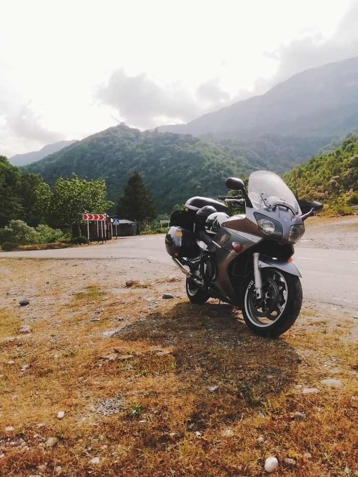 Ладно, едем. Я слезаю с мота- в основном из-за собственного душераздирающего страха- мне проще было идти за мотом пешком, нежели каждый раз ловить приступ хтонического ужаса от выбоин, горных ручьёв под колёсами и обрывов в десяти сантиметрах от нас.