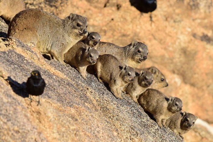 Пригодна нора или расселина должна быть для заселения большой группы зверьков, ведь даманы – ребята семейные, и их семьи, возглавляемые доминантным самцом, иногда достигают 50 особей. Но гораздо важнее, чтобы вход в жильё был расположен так, чтобы быть легко доступным для дамана и малодоступным для того, кто хочет им пообедать, не впечатлившись выделениями пахучих желёз. Чаще всего не впечатляются леопарды, крупные змеи, каракалы и хищные птицы. Одни из самых неприятных противников – кафрские чёрные орлы, которые действуют не силой или скоростью, а хитростью.