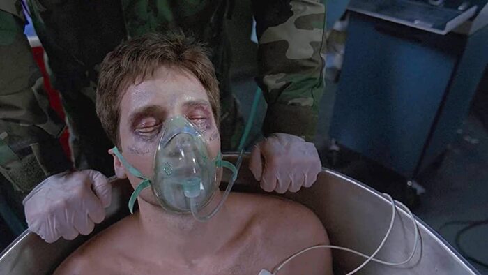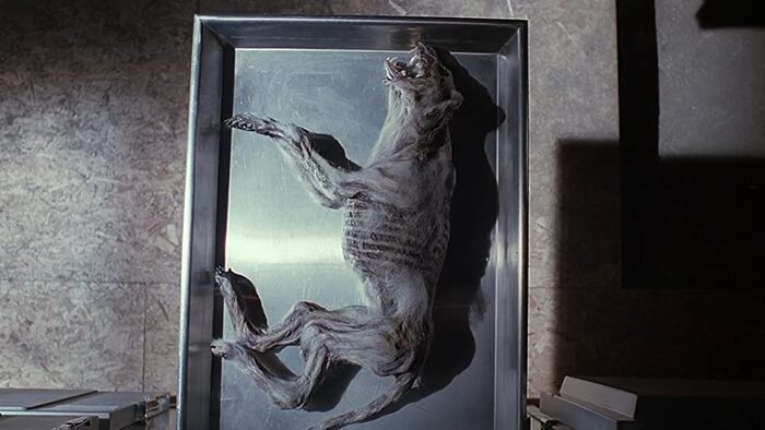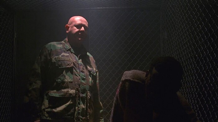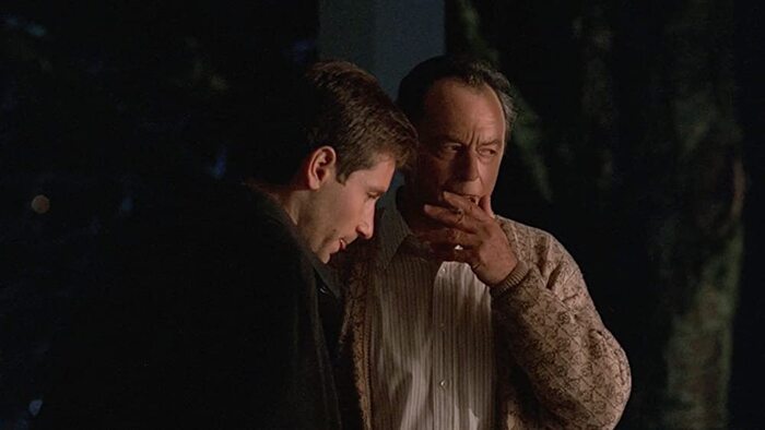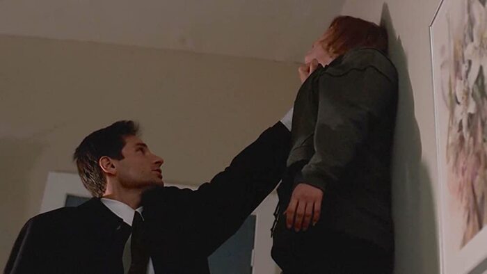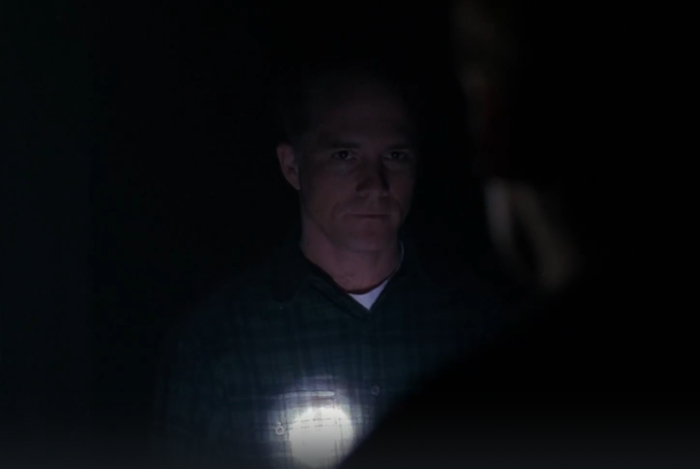 Когда Малдер отправляется исследовать подвал в доме Джима Осбери, он встречает Джима в темноте подвала.