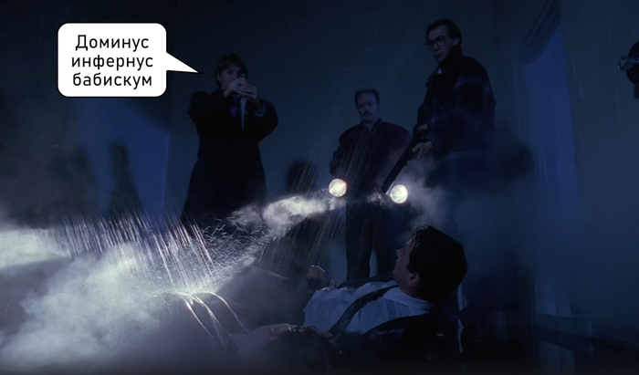 В том русском переводе, в котором я недавно смотрел серию, сектантка говорит: "Доминус инфернус бабискум".