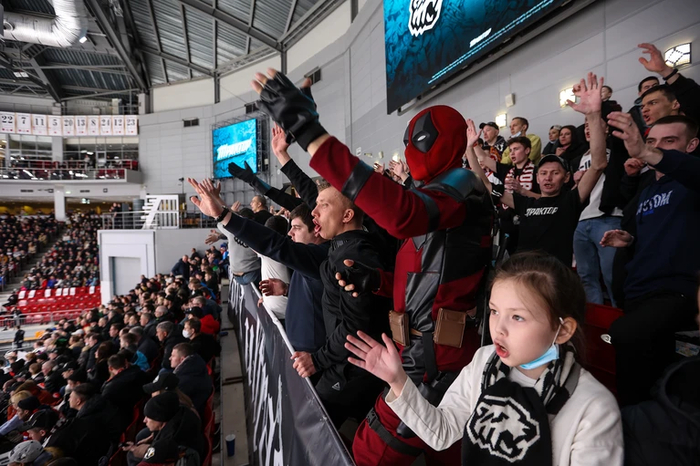 Дэдпул появляется в помещениях арены «Трактор», потом садится вместе с мужиками смотреть «Брата».