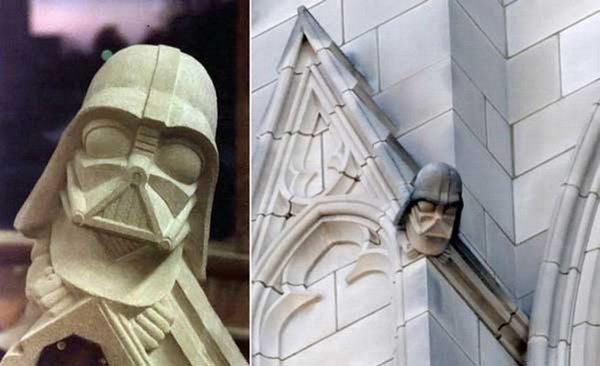Это конечно всё очень круто, но кажется все забыли что Тёмный Лорд был увековечен в скульптуре ещё в 80-х годах прошлого века. Скульптура головы Дарта Вейдера находится на внешнем фронтоне Вашингтонского кафедрального собора. А поместили её туда после детского конкурса архитектурных гротесков для здания, проведённого Собором. Так себе представил воплощение зла юный шутник Кристофер Ридер.