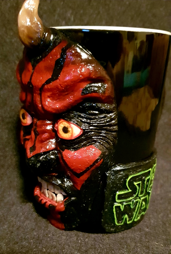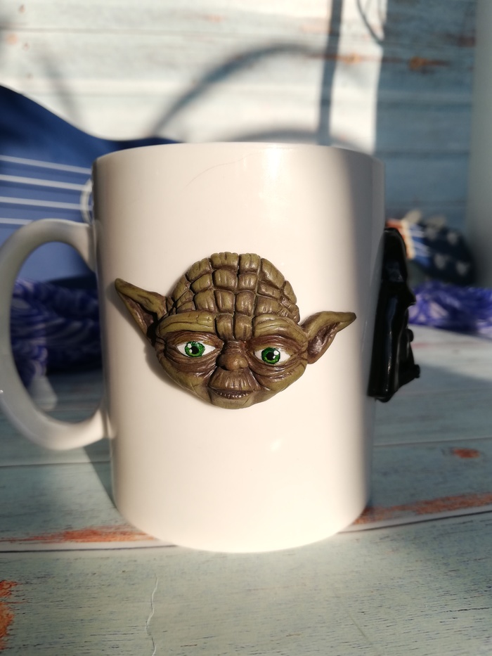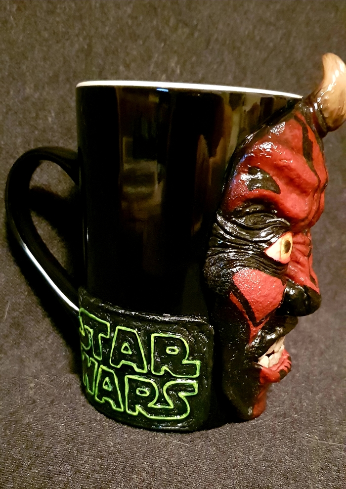 Пожеланий у заказчицы было минимум - крупный декор с Дартом Вейдером на чайной чашке.