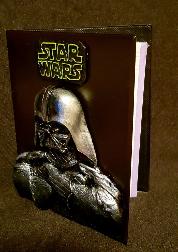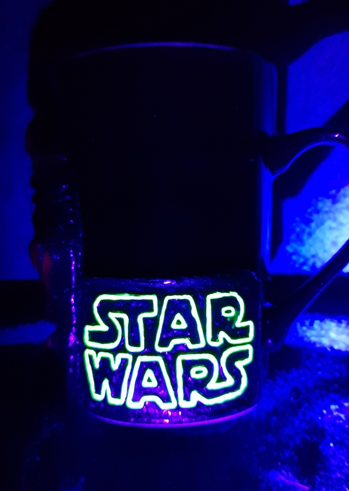 У Дарт Мола на кружке глаза светятся в темноте, буквы светятся в ультрафиолете. У Дарт Вейдера на тетради буквы светятся в ультрафиолете.