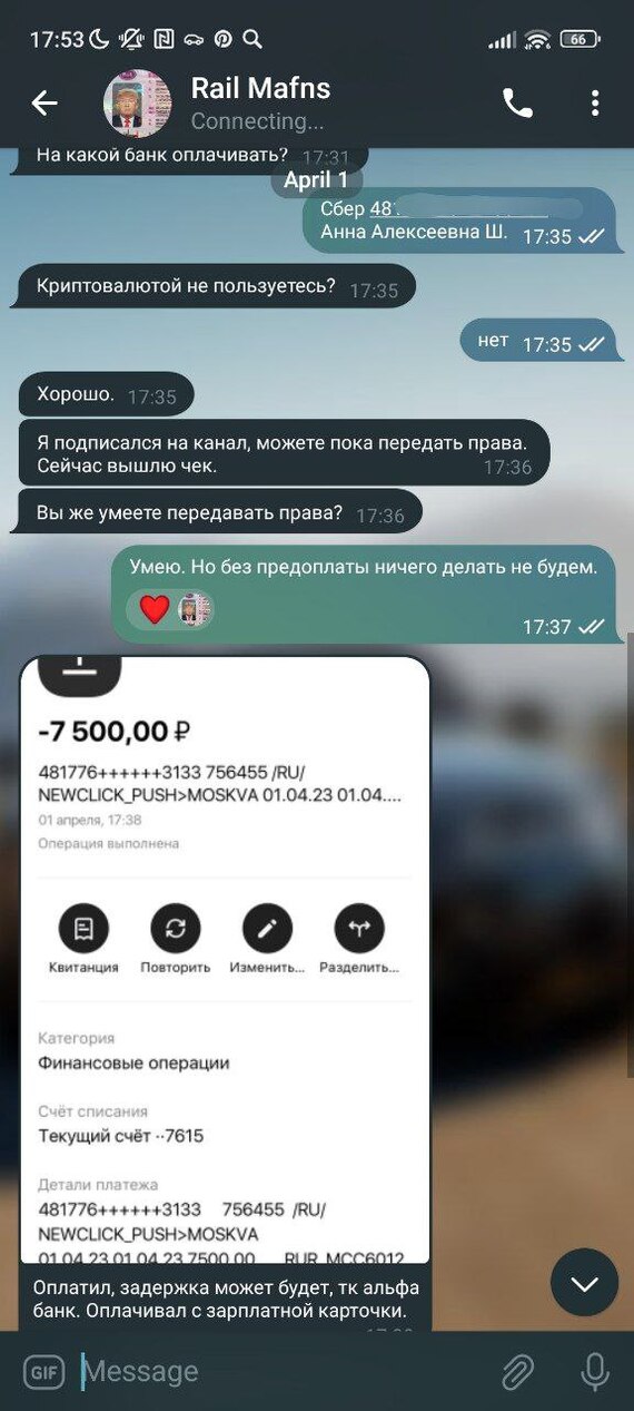 Мы всегда работаем по предоплате, что делая фигурки, что в других сферах со сдельной оплатой какого-либо труда. С фразой "Пока не увижу перевод, ничего не буду передавать!" я ушла на кухню готовить обед, оставив на супруга телефон и свой ноут, но тут то и началооооооось...