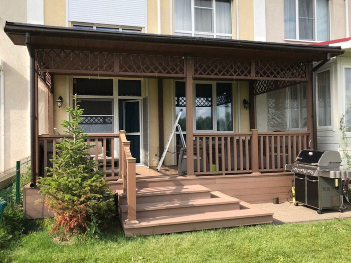 В прошлом году, когда жене окончательно надоело убирать всё с террасы во время дождя, я занялся поиском решения для навеса.
