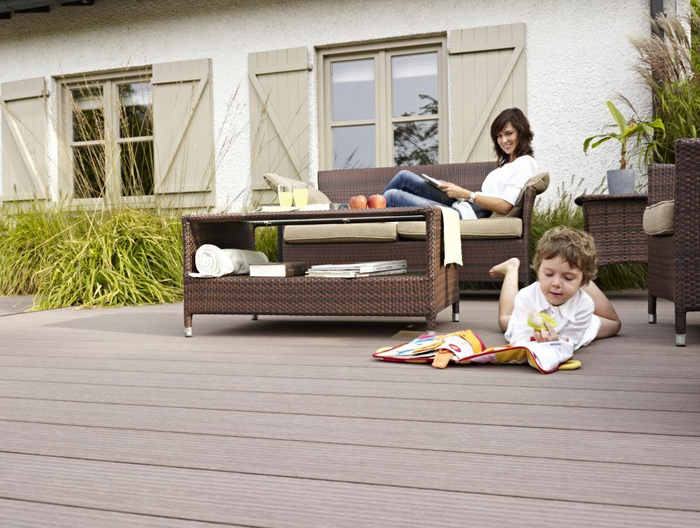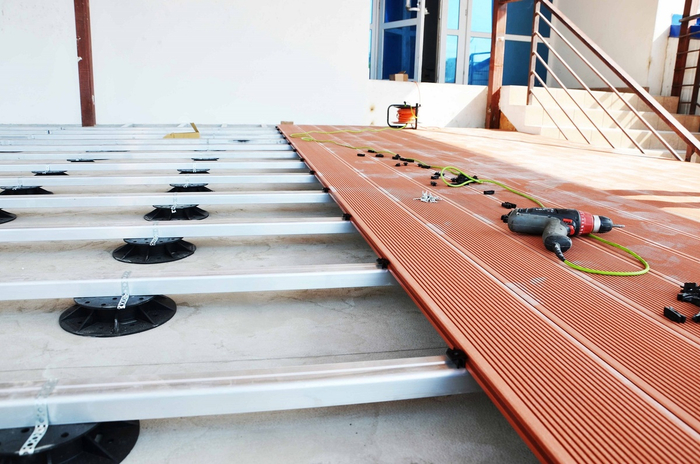Но понял, что это такое себе. И просто прикрутил саморезами к лагам террасы. Почти сразу зонт прошёл испытание градом: