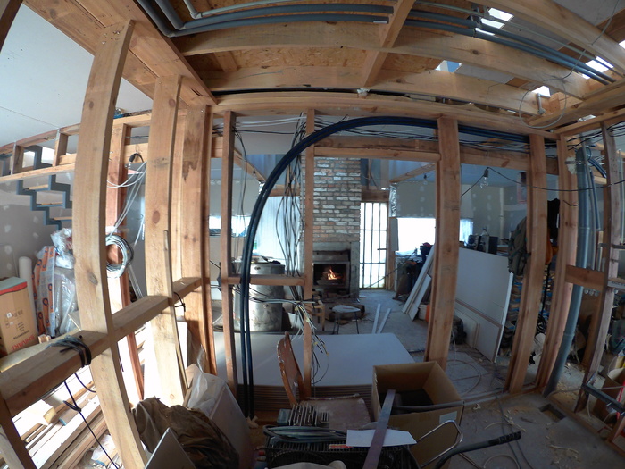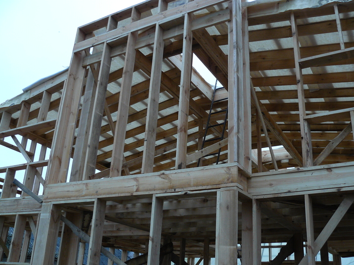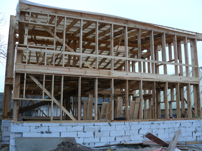 У меня было желание построить для своей семьи дом, от начала и до конца самому. И таким образом реализовать себя, получить интересный опыт, и построить то что хочется. В итоге мы с женой построили себе каркасный дом на 120 м.кв, кстати это первый каркасник в нашем маленьком городке, так что подглядеть не было у кого, приходилось разбираться самим. Мы выбрали платформенную технологию, так как она позволяла возводить стены с минимальным количеством людей. Основной несущий каркас собирали из доски 200*40 мм., соответственно в стены уложили 200 мм. стекловаты, что для нашего региона выше нормы. А в кровлю уложили 250 мм. стекловаты так как там тепло потери больше. Доска 200*40 мм. также использовалась для перекрытия и стропил.