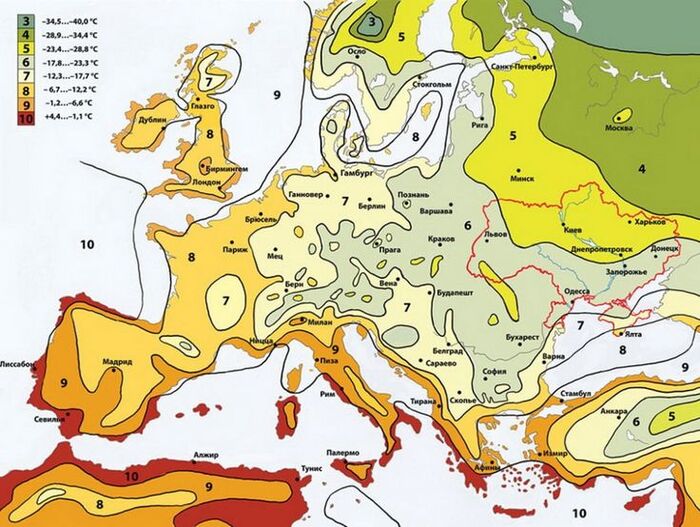 Все сорта и гибриды плодовых (и декоративных) культур, которые вы покупаете в питомниках или в инете, распределены по зонам (USDA), исходя из температурных характеристик. Чем больше цифра, тем теплее должно быть для комфортного роста растений.