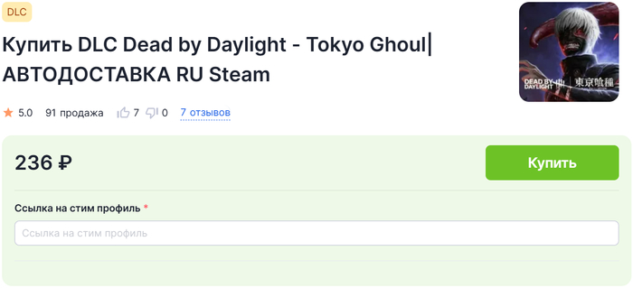 Покупка Dead by Daylight Tokyo Ghoul Chapter через маркетплейс ggsel