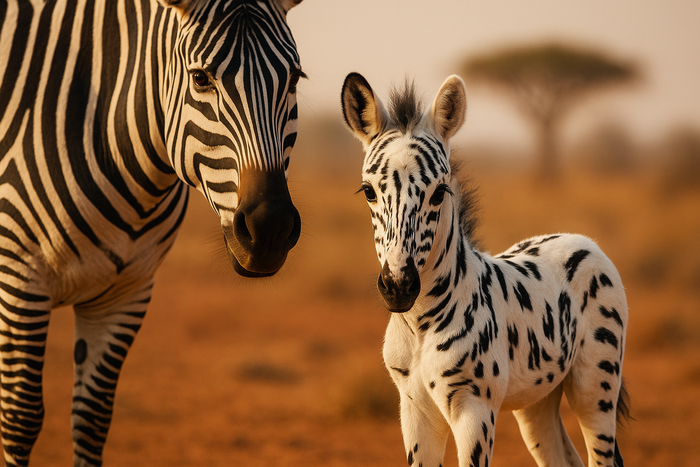 Да. Но редко. Иногда рождаются зебры с мутациями: альбиносы, меланисты или с пятнистым окрасом. Например, в Кении обнаружили жеребёнка с точками вместо полос. Такие особи часто не выживают: без полос нет защиты от мух, нет маскировки, нет социальной идентификации.