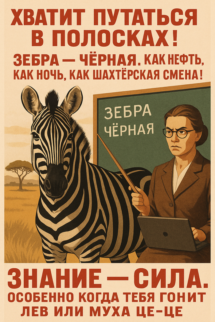 Так что в следующий раз, когда увидите зебру, вспомните: иногда, чтобы выжить, нужно быть одновременно разным. И не бояться выглядеть странно в чужих глазах. Потому что настоящая природа - всегда сочетание разного! Диалектика!