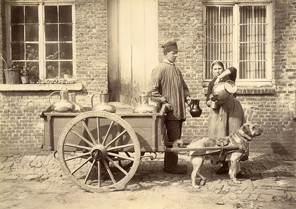 Погонщиками таких упряжек были в основном женщины или дети из фермерских семей, они вели тележку по маршруту, останавливаясь у домов или рынков, а иногда располагались у дороги, где любой проходящий мимо мог купить кувшин молока.
